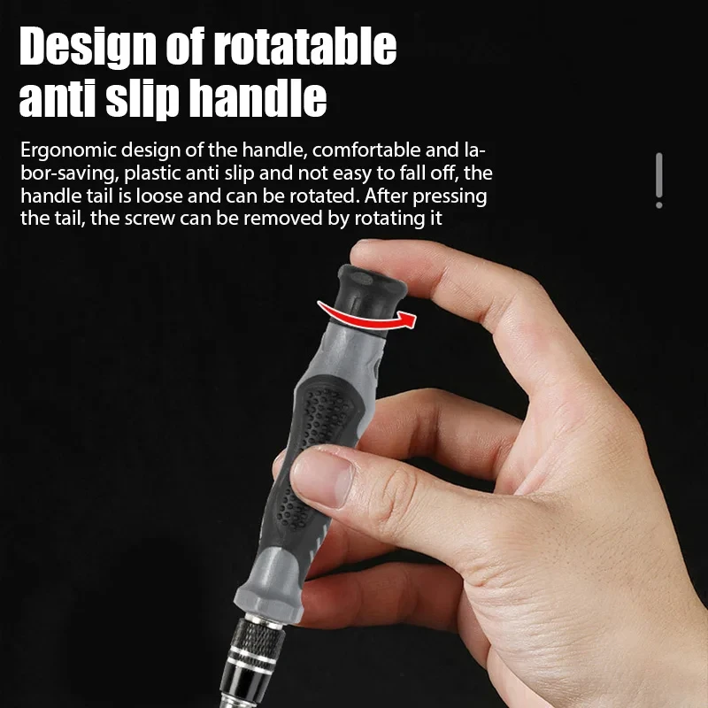 Equipado com 98 brocas de precisão e 17 acessórios essenciais, este conjunto de chaves de fenda portáteis 115 em 1 é a escolha ideal para resolver operações diárias de manutenção e precisão.Quer se trate de eletrodomésticos, laptops, smartphones ou outros dispositivos eletrônicos, ele pode lidar facilmente.