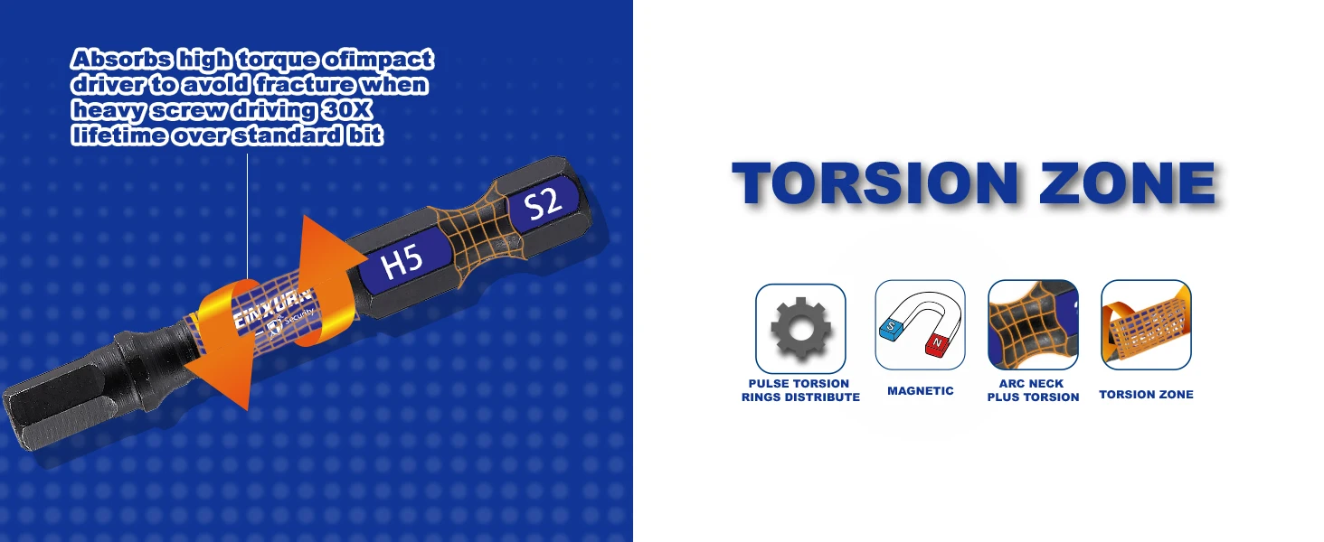 Absorve alto torque da chave de impacto para evitar fratura quando parafusos pesados com vida útil de 30X em relação à broca padrão